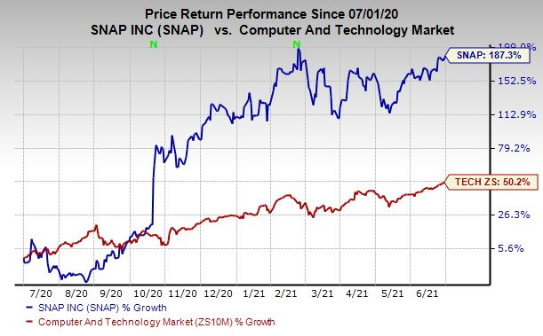 Snap SNAP is set to report third-quarter 2021 results on Oct 21The Zacks Consensus Estimate for revenues is currently pegged at 109 billion indicating 599 growth from the year-ago.